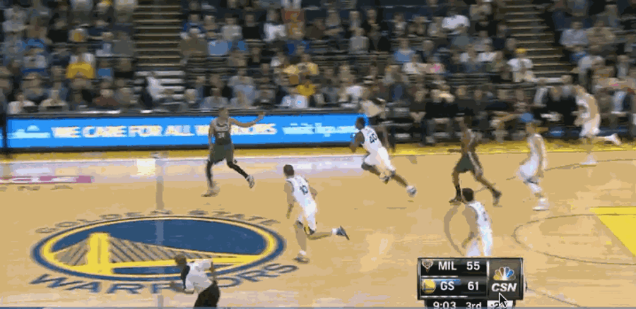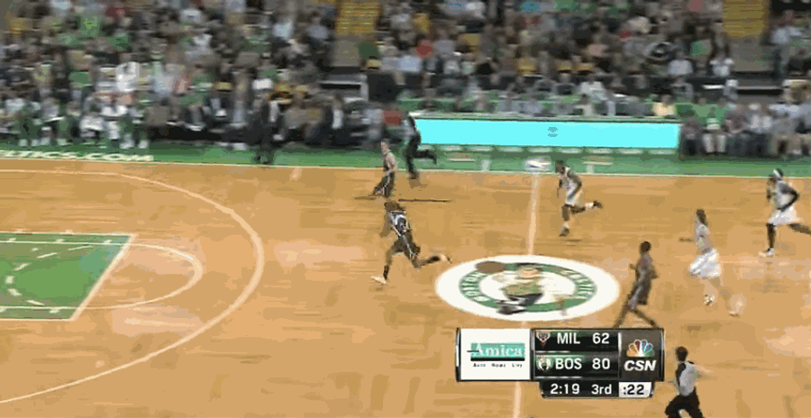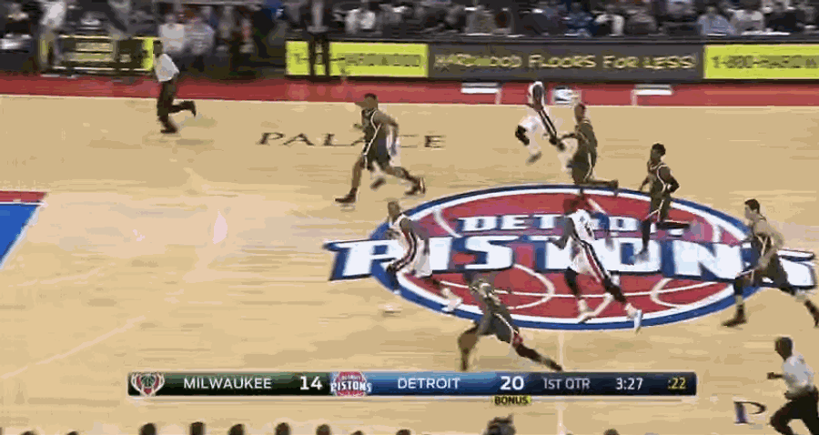 Last night Giannis Antetokounmpo pulled off the move that is quickly becoming his signature, gathering his dribble behind the three-point line, taking two steps, and laying the ball in. That is at least 22 feet covered in just two steps, with Antetokounmpo using his incredibly long limbs to make plays that are impossible for almost anybody else. Even better is when the move finishes off a three-quarters court one-man fast break that utilizes only two dribbles.