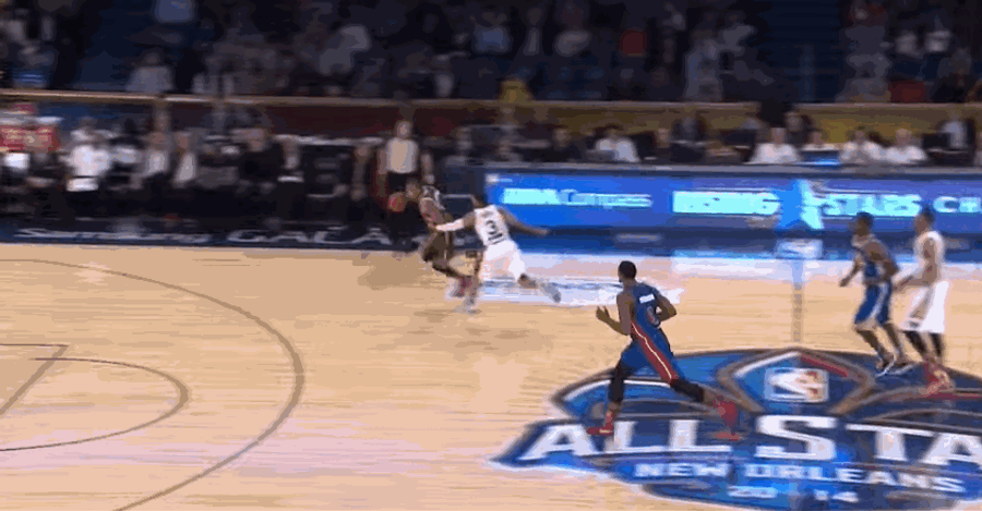 In the Rising Stars Challenge (after the whistle had already blown for a foul and with its requisite lack of real defense):