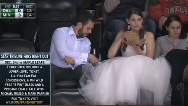 Have you ever balled as hard as these newlyweds at Saturday’s Minnesota Wild game? Specifically, have you ever balled as hard as this woman in a wedding dress eating a burger at a Minnesota Wild game?