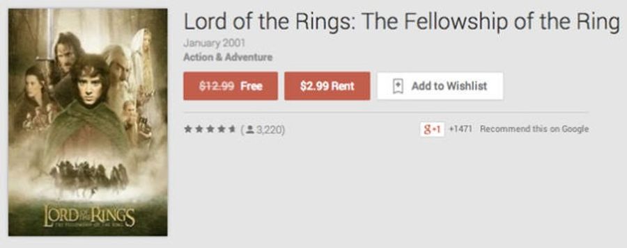 Have a free movie for the holidays, courtesy of Google Play. [ FREE Lord of the Rings: The Fellowship of the Ring]