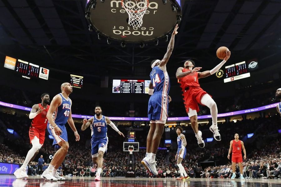 Jabari Walker collected 12 rebounds for Portland, which outscored the 76ers 72-49 in the second half.