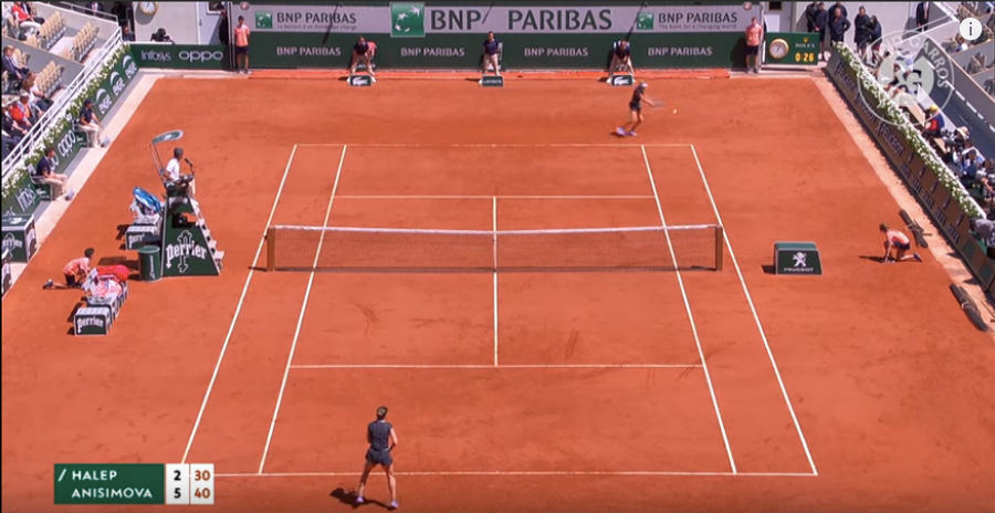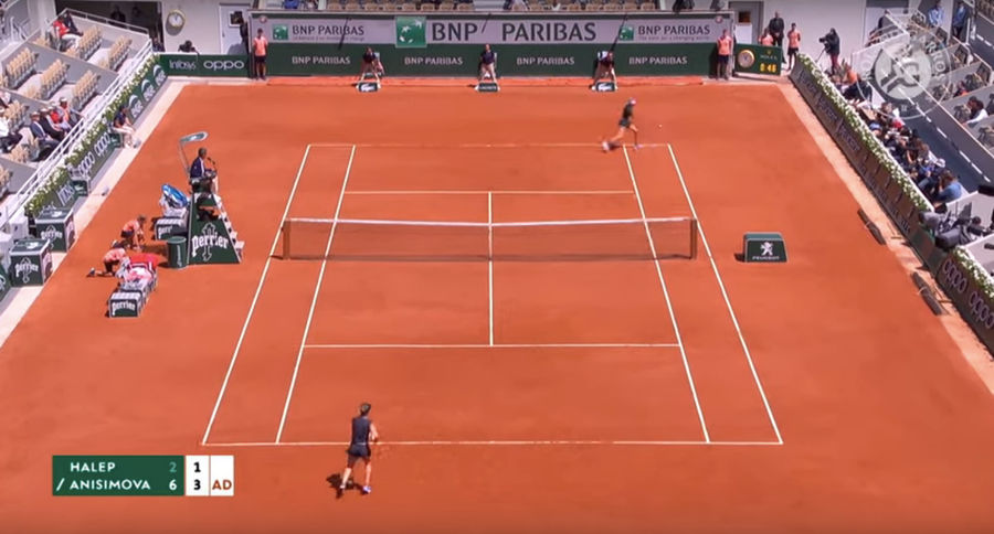 Let’s freeze this situation in the first set. Anisimova is on the move and stretching to hit this ball. Anytime you’re getting pulled out into the doubles alley while the other player stands prepared in the middle of the court, it’s bad news.