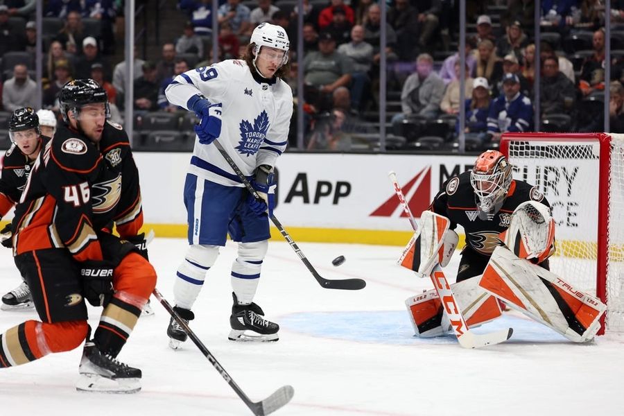 After a quick Anaheim early push, the Maple Leafs outshot the Ducks 18-9 in the first period, but couldn't light the lamp. And when Dostal was not making the save, he received help, notably when Ilya Lyubushkin swept away the puck from the goal line when Matthews figured he had opened the scoring with an open net to slip the puck into it.