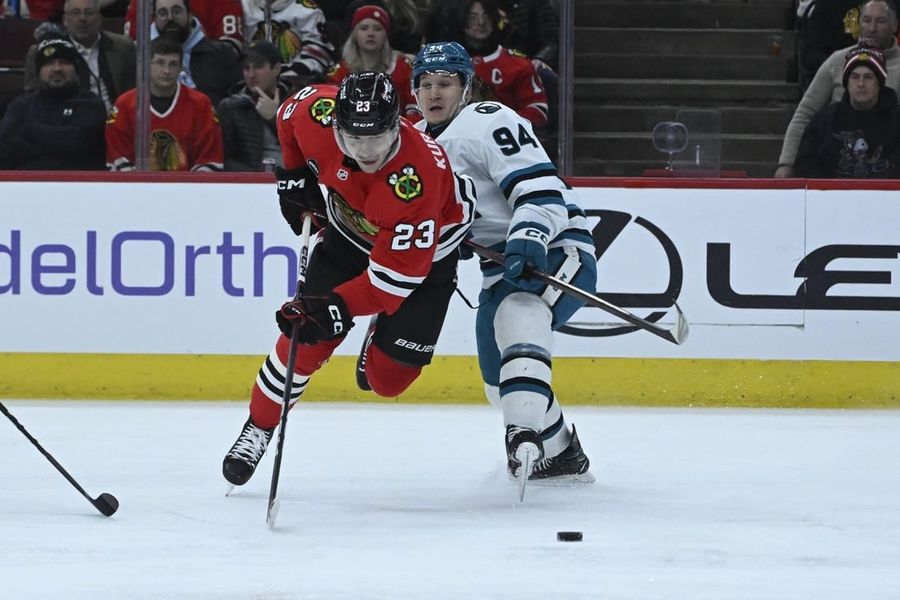 San Jose nearly scored in the closing seconds of OT. A Tomas Hertl shot trickled slightly past Mrazek, who had left the crease, but Blackhawks defenseman Kevin Korchinski knocked the rebound aside.