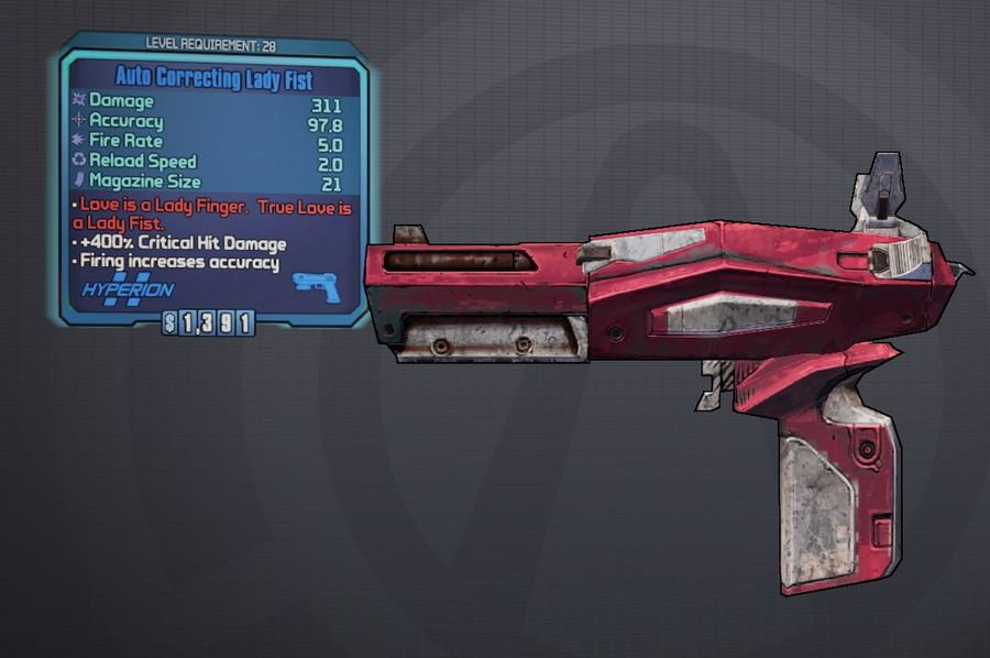 A lot of games get easier as you master them, but Borderlands 2 is the opposite: To get the best loot, you have to fight increasingly difficult enemies, which require increasingly awesome combinations of loot to kill. I've reached a point where possessing the best weapons is the only advantage you can give yourself, because now all the bad guys level up at the same rate you do, plus regenerate their health. So the best combination of weapons I've got going currently is the Bee Shield combined with the Lady Fist pistol. When it's fully charged, the Bee Shield augments whatever weapon you're using with 31K points of additional damage per shot (I realize you have no point of reference here, so just trust me that that's a lot). The bonus effect for the Lady Fist , meanwhile, is that scoring a critical hit (a headshot, in most cases) increases damage by 800 percent (all the best weapons in the game have bonus effects, ranging from simple things like auto-targeting to much radder things like the gun that talked to me when I fired it).
