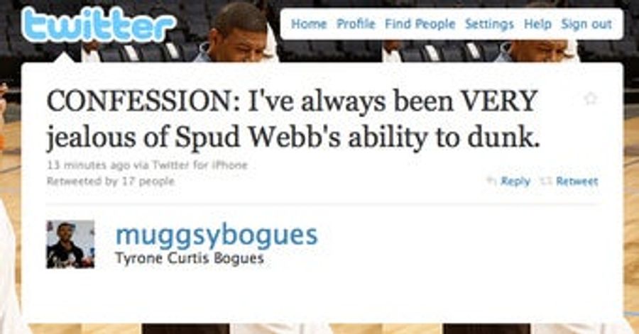 Noted short person and former NBA player Muggsy Bogues let the cat out of the bag today, finally coming clean about his jealousy of Spud Webb's ability to dunk. [ @muggsybogues]