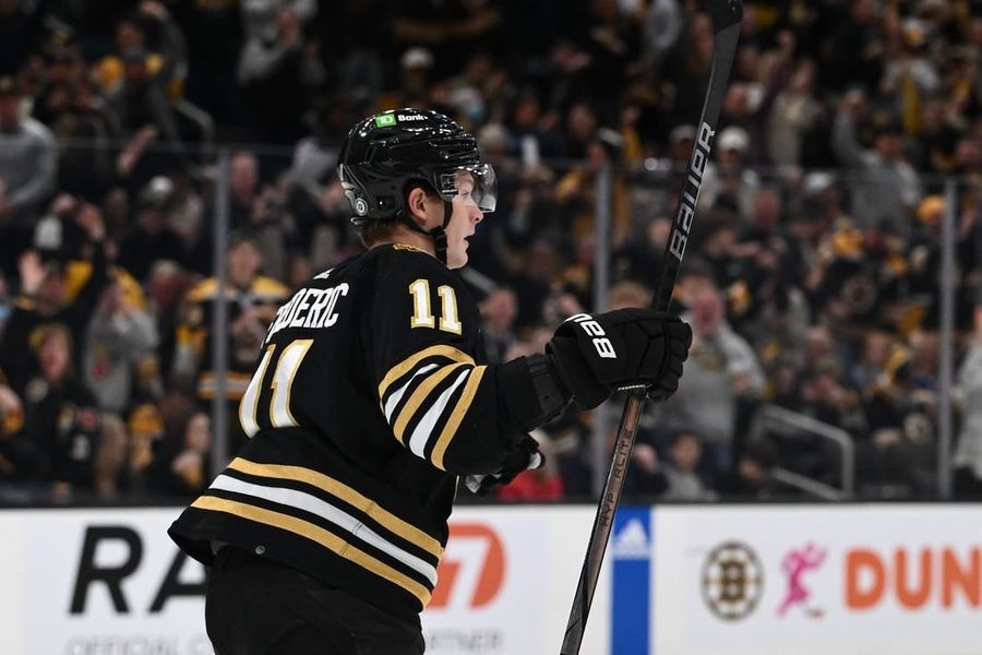Frederic's second goal came 1:49 into the second. Poitras dished to Matt Grzelcyk to start the play before taking a hit from Tampa Bay's Tanner Jeannot, but Frederic scored on a second chance at the left crease.