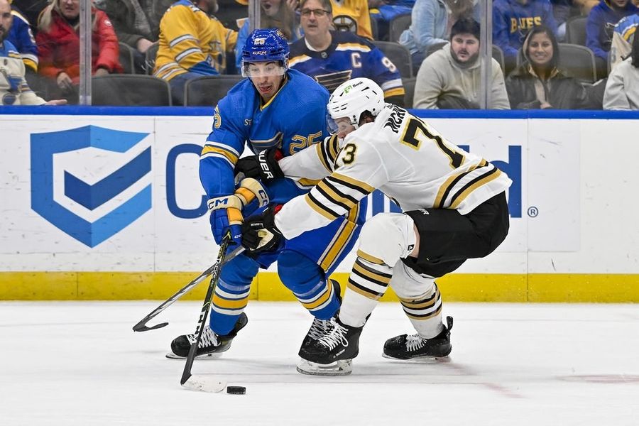 Marchand opened the scoring 5:02 into the game, but Hayes tied the contest at 6:07 of the first. McAvoy's first goal gave the Bruins a 2-1 lead at 6:26 of the second period, but the Blues pulled even when Neighbours scored at 10:57 of the second during a St. Louis power play.