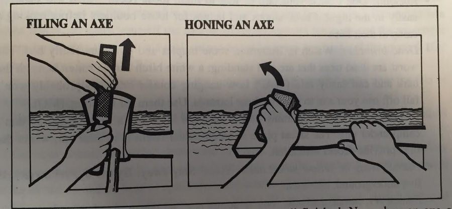A primer on axe sharpening happens to be just the kind of thing this book actually gets right. It helps that the axe has existed since the Stone Age, and although it now usually has an iron or steel blade, it’s pretty much the same tool that it has always been. But if this brief overview is not enough for you, please refer to this 1999 text An Ax to Grind: A Practical Ax Manual by retired U.S. Forest Service historical specialist (an axe expert) Bernie Weisgerber for your detailed axe needs. It’s 68 pages long and it has pictures and room for notes! There’s also an hour-long video.