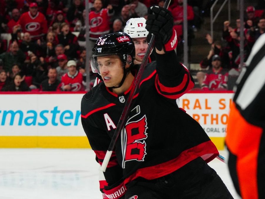 With his 17th goal Thursday, Carolina's Sebastian Aho has 29 of his team-leading 54 points in his last 18 games. Aho has posted six goals with five assists in 12 career games against the Coyotes.