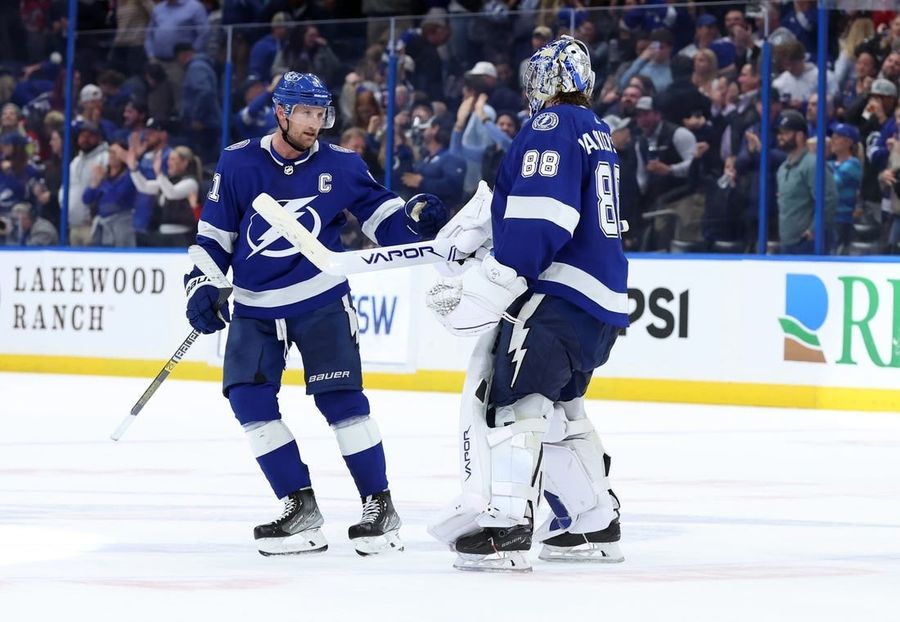 Vasilevskiy made the initial save, but Mercer stuck with it, found his rebound and fired the puck from a bad angle. It struck a sprawling Vasilevskiy and flopped in.