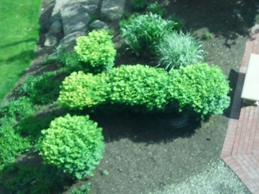 This is a perfectly sculpted dong bush outside my office window.