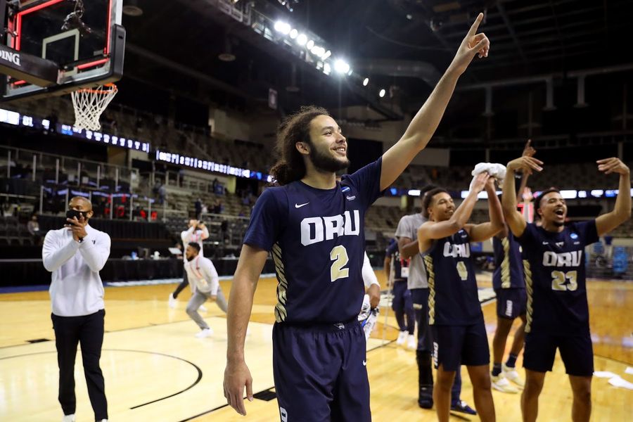 On paper, it doesn’t make sense. But, I guess, that’s why they play the games. No. 15 seed Oral Roberts is the lowest-seeded team left in the field after upsetting No. 2 Ohio State and No. 7 Florida. The Golden Eagles are led by 6-foot-1, and that’s being generous, guard Max Abmas, the country’s leading scorer this season at 24.2 points per game. He’s averaging 27.5 in the tourney.