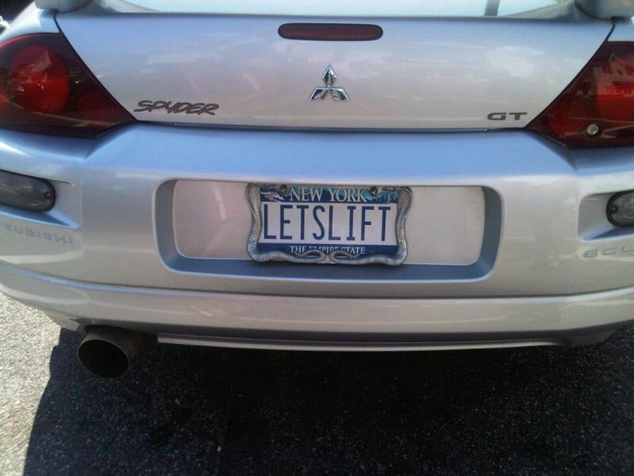 Spotted on a hungover bagel run in Hampton Bays, NY. What really did it for me was the dueling cobras plate frame.