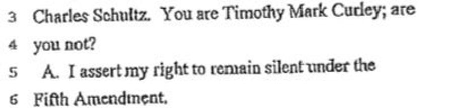 From there, he put on a world-historic Fifth Amendment clinic, pleading his right to remain silent in response to every single question, for 168 pages of interview transcripts. Here is a selected list of questions that Curley pleaded the fifth to: