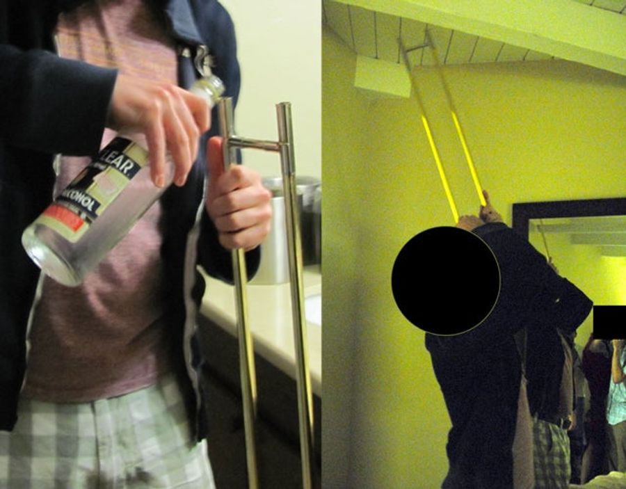 When we first check into our hotel we get three days' per diem up front, usually around $55 total, which doesn't seem like a lot until you realize that, for a college kid, "per diem" is Latin for "beer money." If we win our first game, we get per diem for the remainder of the weekend when we return to the hotel. A $5 tax on all 29 people in the band makes for a nice slush fund for filling a hotel suite with booze. We never finished that Everclear. Every year we end up dumping liquor down the drain. Last year it was the moonshine I don’t remember drinking.