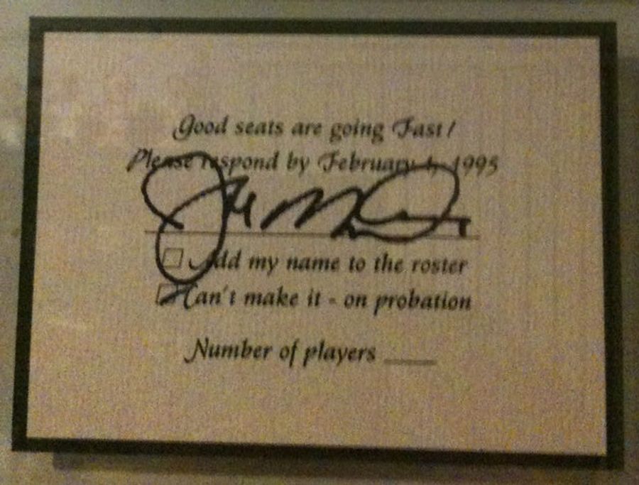It needn't even be nuptials! Reader Joel dug deep to find a old note from Joe Montana, respectfully declining to attend Joel's bar mitzvah:
