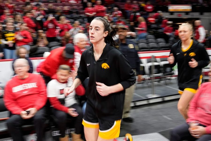 Iowa star Caitlin Clark is unharmed after she was knocked to the ground by a fan during a postgame court storm at Ohio State on Sunday afternoon in Columbus.