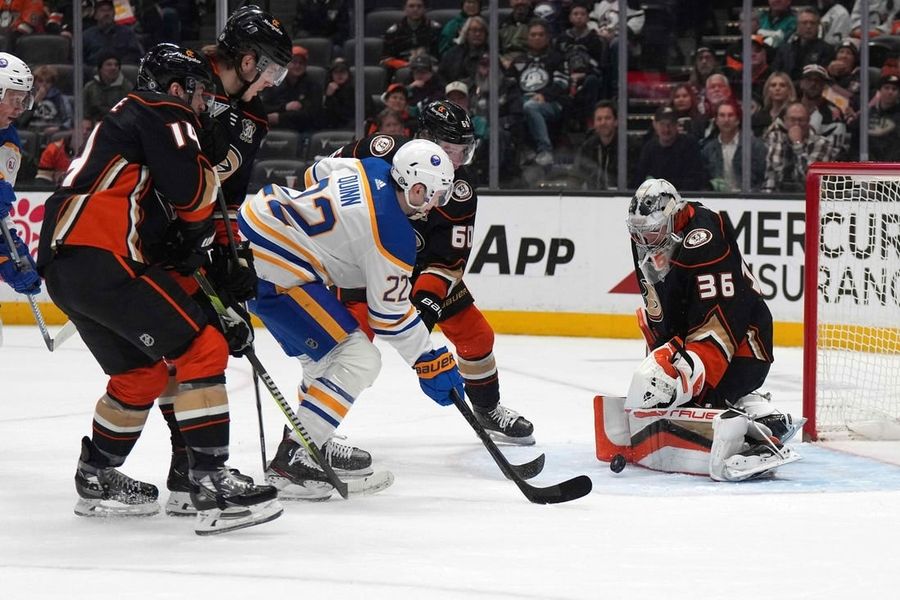 After Mason McTavish forced Sabres forward Casey Mittelstadt into a turnover in the neutral zone, the Ducks cycled in the Buffalo zone before Silfverberg, in the slot, tipped Radko Gudas' shot from the blue line past a screened Luukkonen to give Anaheim a 1-0 lead at 5:51.