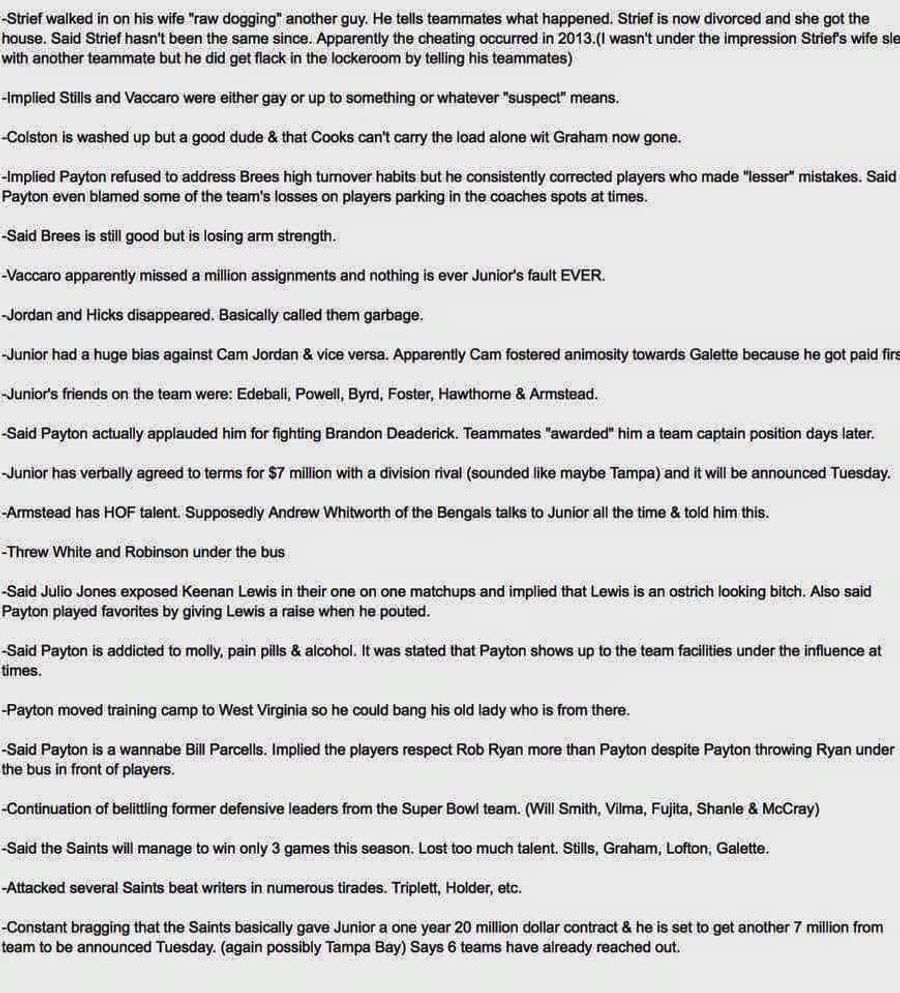 The Payton stuff is especially explosive—though it’s not clear whether Galette was parroting some common rumors around the league, or confirming them from his personal observation.