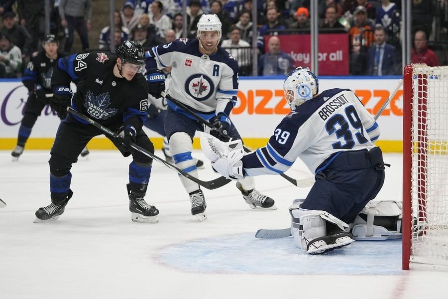 Samsonov made two spectacular saves in the early minutes of the second period when Winnipeg had a two-man breakaway during a Maple Leafs power play.