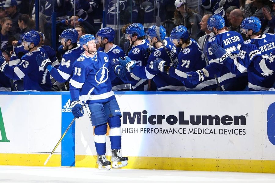 Nikita Kucherov recorded three assists — all in the second period — for the 20th three-point frame of his career. The high-scoring right winger also eclipsed 800 points with the helpers, joining Stamkos, Martin St. Louis and Vincent Lecavalier in achieving the milestone.