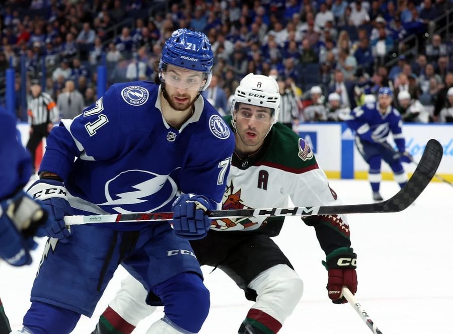 Nikita Kucherov had a goal and two assists, Steven Stamkos added a goal and an assist to eclipse 1,100 career points, and the Tampa Bay Lightning won their sixth straight home game, 6-3, over the Arizona Coyotes on Thursday night.