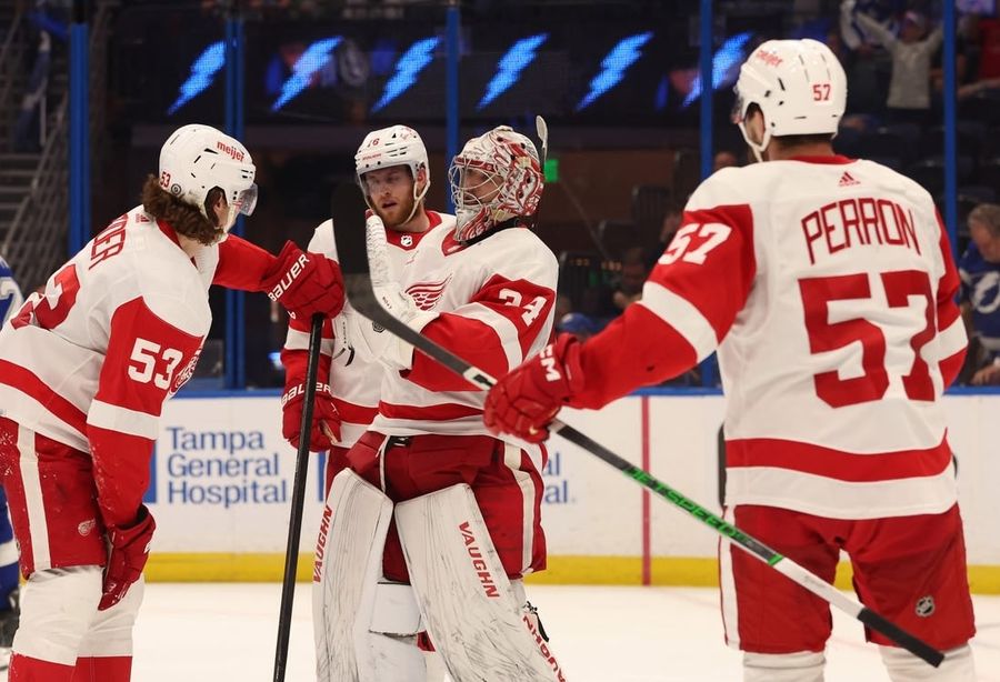 With the net empty as the Lightning tried to tie the match for the third time, Lucas Raymond tallied his 25th for the Wings (37-30-8, 82 points) as they broke a four-game losing streak (0-2-2).