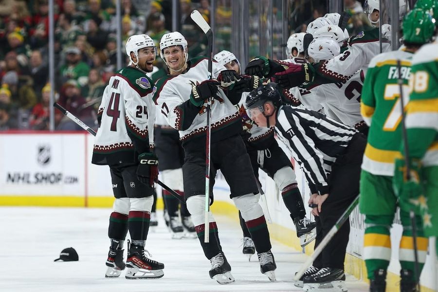 Bjugstad, who was born in Blaine, Minn., scored twice in the first period and once more in the second period. Clayton Keller had two goals and an assist for the Coyotes, and Alex Kerfoot also scored.