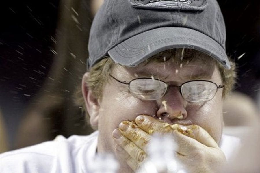 • One guy named "Obi Wing" made the final 10. Crazy dude who carries a light saber with him everywhere — in real life, not just in the competition. Seriously, he goes down the shore with it. The Sea Isle lifeguards can't stand him. He qualified by eating a whole pineapple, including the hard-ass shell. Completely off his nut. In the second round, he was the first to puke.