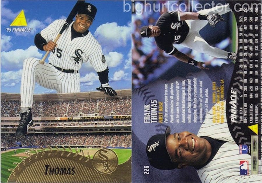 In the foreground of the card sat the White Sox’s stadium, and in the background Thomas loomed like Godzilla, stepping gracefully over the wall behind home plate and onto the field, a bat slung over his right shoulder and a grin on his face. Honestly, it’s a pretty corny-ass baseball card, but at the time it captured everything about Frank Thomas.