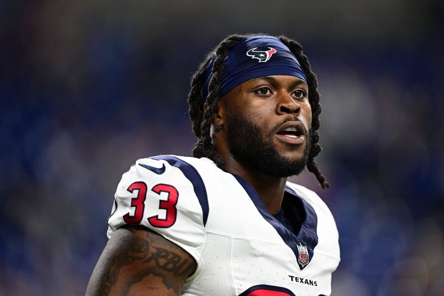 Jan 6, 2024; Indianapolis, Indiana, USA; Houston Texans running back Dare Ogunbowale (33) stands on the field before a game against the Indianapolis Colts at Lucas Oil Stadium. credits: Marc Lebryk-USA TODAY Sports The Houston Texans are re-signing running back Dare Ogunbowale to a one-year contract, NFL Network reported on Sunday.