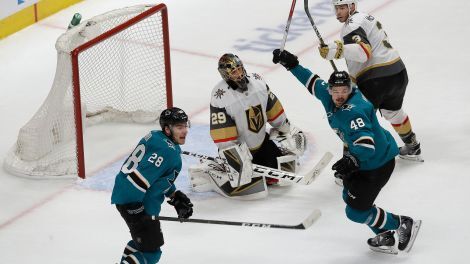 This was a tough-luck night for the Avalanche, and the first sign that they might be destined to lose appeared when superstar forward Nathan MacKinnon—their best player in the playoffs so far—picked up what looked like a shoulder injury within the first two minutes of the game. MacKinnon came back to the bench before the period was over—and maybe his presence for the 14 minutes or so that he missed wouldn’t have even made a difference—but in the time he was off, the Sharks scored a pair of goals to go up 2-0. The second came courtesy of Tomas Hertl, but the first and most dramatic was an exquisite deflection by the stick of Joe Pavelski, giving the captain a goal in his first game back since his injury that turned the tide in Game 7 against Vegas last round.