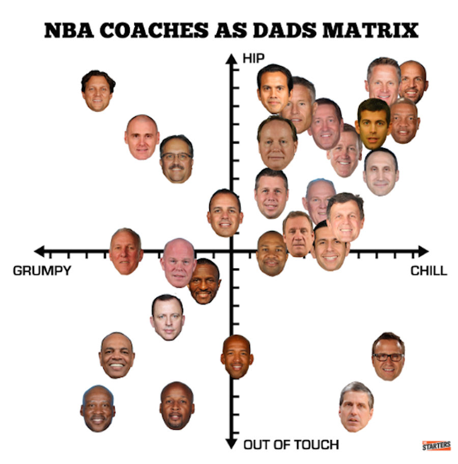 Some important NBA analytics here: if each head coach were a dad, would they be a cool dad or a lame dad?