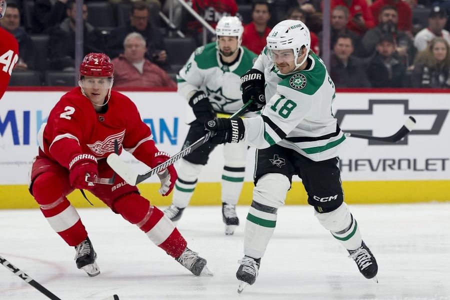 Stars score 4 in 2nd period, top Red Wings