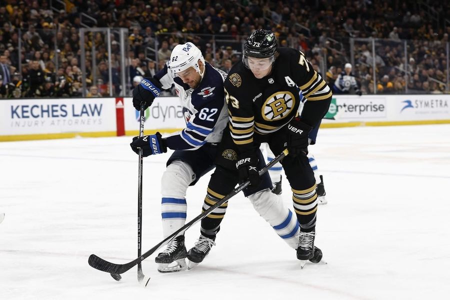 Charlie Coyle scored the game-winning goal and added an assist while Jeremy Swayman made 12 of his 22 saves in the third period as the Boston Bruins defeated the visiting Winnipeg Jets 4-1 on Monday night.