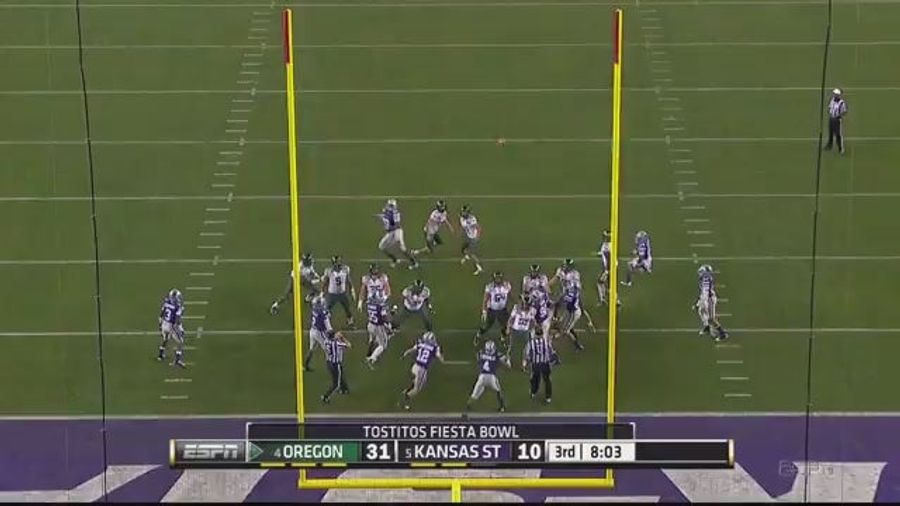 The Wildcats blocked Oregon's extra point try, recovered it outside of the end zone, then retreated into the own end zone where they were tackled for what the NCAA officially calls a "try safety." Watch »