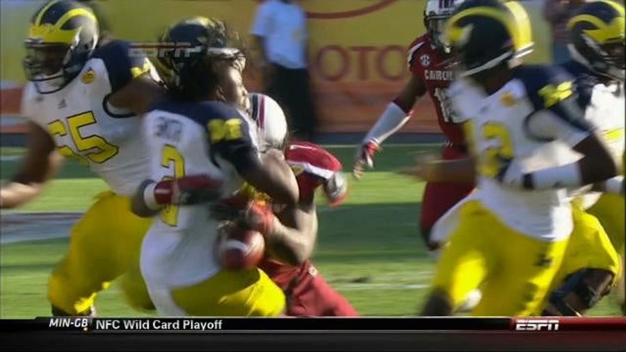 Here's Jadeveon Clowney putting Wolverines running back Vincent Smith in a very bad place. Watch »