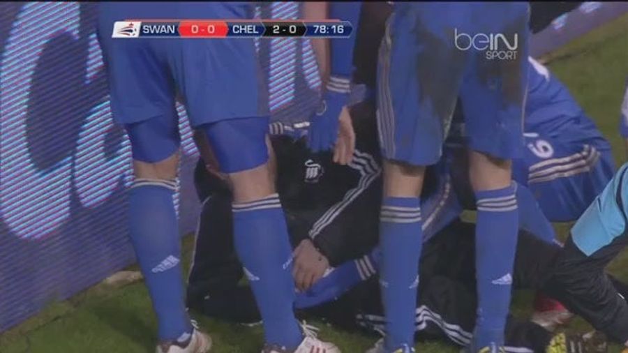 Chelsea found themselves down a man as Belgian Eden Hazard in an attempt to wrest a ball off the touchline from a ballboy proceeded to kick the youth. Watch »