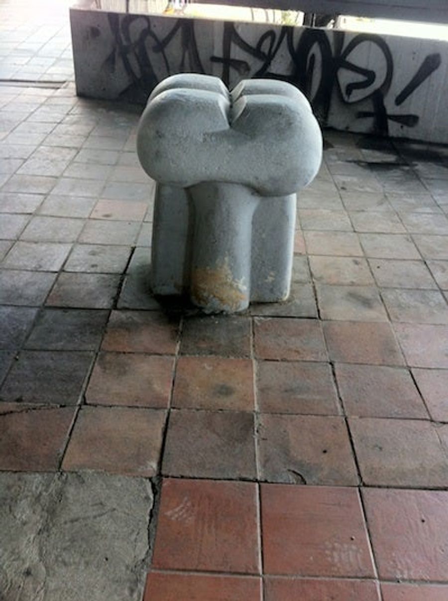 In Prague, in an underpass. There is no reason for this sculpture (?) other than surprise dongage. Not only that, there's a matching one on the other side of the underpass.