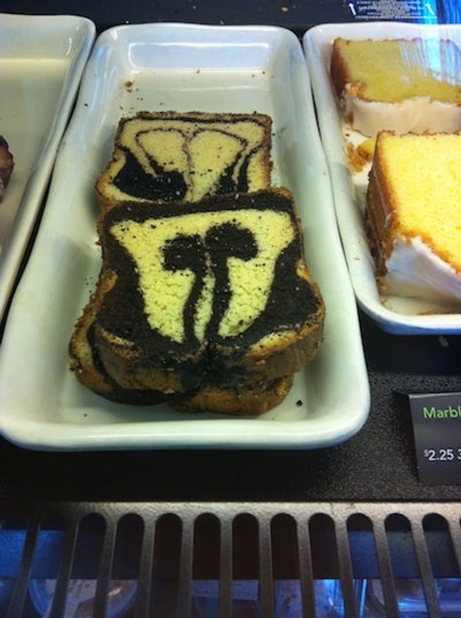 A Starbucks dong from Brittany. Thanks, Brittany! Seeing things in pound cake is a time-honored tradition. Although you sort of went the other way with it.