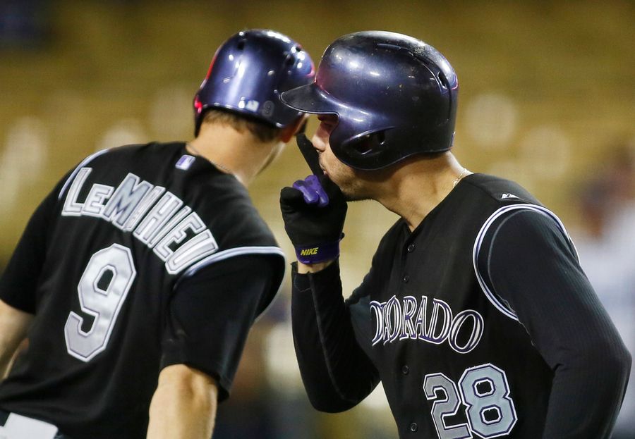 This actually turned out to be a rather important moment in the game. Arenado felt like Turner’s slide was a bit too late, and ended up getting into it with the Dodgers’ dugout after the play. Arenado went on to hit the game-winning home run in the top of the 16th inning, pounding his chest and woofing as he rounded the bases. After he touched home, he turned towards someone, probably a fan, and did this: