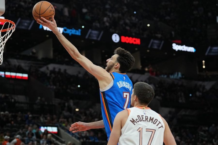 Holmgren has helped fuel Oklahoma City's defensive efforts with 2.6 blocked shots per game, fourth most in the league. He is also grabbing a team-high 7.4 rebounds per game.