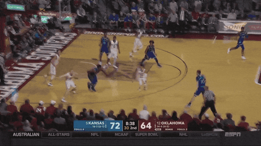 Christian James and Brady Manek were the two main beneficiaries, combining for 29 points. They also each hit back-to-back massive threes to take the lead and then seal the win at the end of the game—thanks to assists from Young, who drew away their Jayhawk defenders.