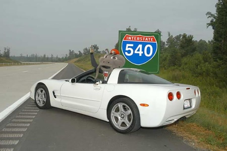 • Mascot of the Week. Muddy, Carolina Mudcats, Double-A Southern League. Hey, is Muddy ... yes, I believe if you look closely, you can see he's giving the finger! "Fuck you, cops! You'll never catch me!" Screeeee! "Kiss my negatively buoyant ass!"