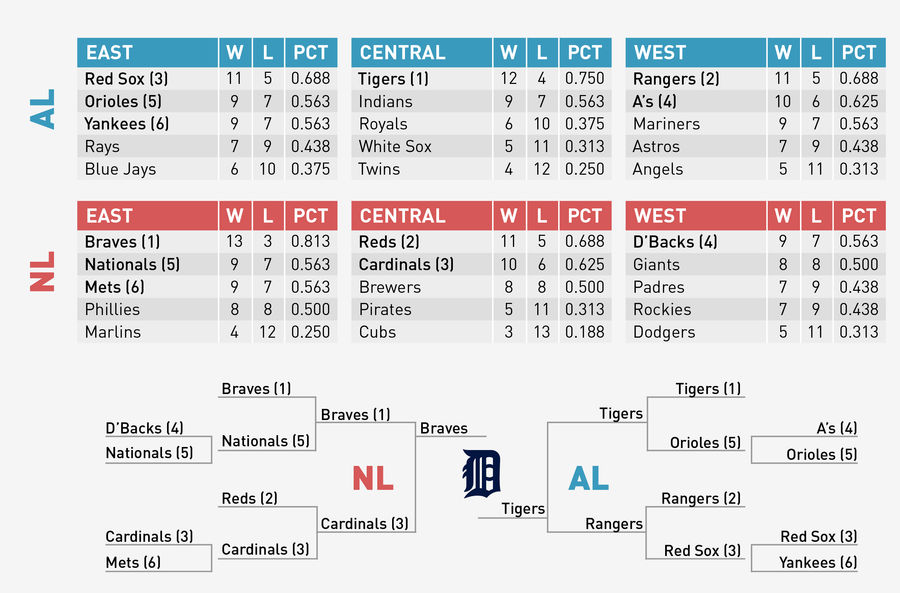 Both the Detroit Tigers and the San Francisco Giants squander talented lineups and narrowly miss the playoffs. While neither of these teams was a top seed in real life—the Tigers won 88 games, the Giants 94—both made it to the World Series.