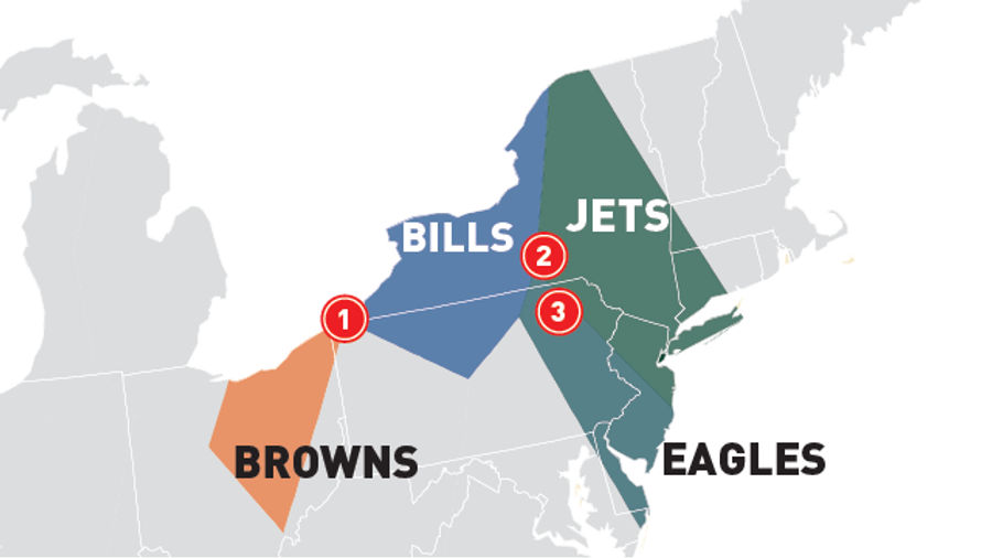 3. Scranton, Pa.: Officially an Eagles secondary market, but equidistant from the Bills and Jets/Giants. Common Census can't make up its mind on this one.