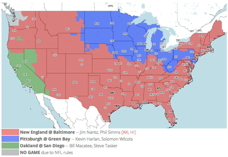 Which TV Market's Getting Screwed Today? Your Week 16 NFL Viewing Maps