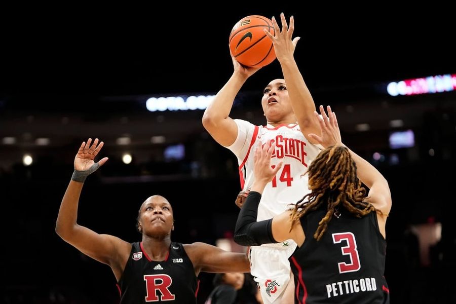 Madison Greene scored 16 points off the bench to help the Buckeyes beat the visiting Scarlet Knights in Columbus, Ohio.