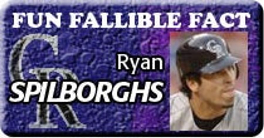 When asked who would play him in a movie of the Rockies' postseason, Spilborghs said Tony Danza. Apparently the second-year outfielder wants to have a notable yet mediocre start to his career, then just hang around in the twilight of his career, serving little purpose. Spilborghs hopes to God that David Dellucci doesn't know anything about law regarding intellectual property.